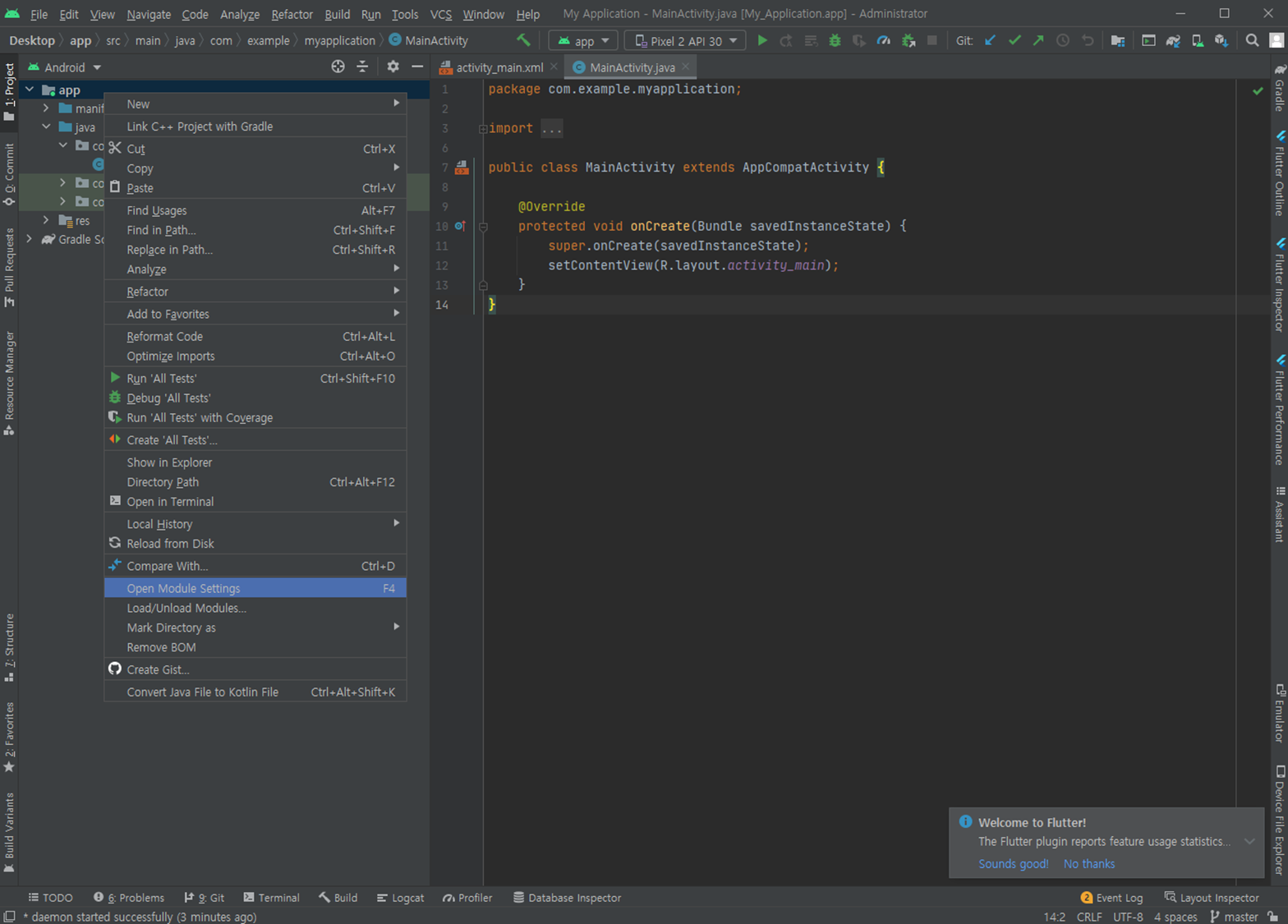 7. Android Stuido에서 해당 프로젝트 우클릭 후 Open Module Settings 클릭