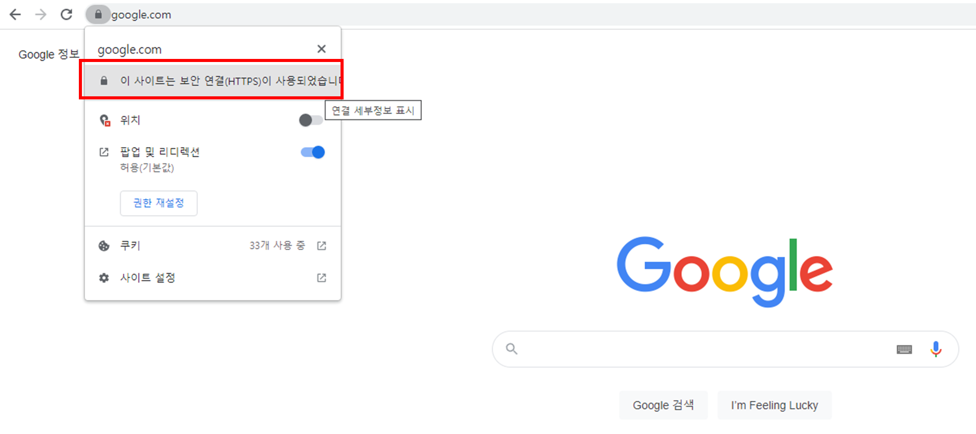 2. 이 사이트는 보안 연결(HTTPS)이 사용되었습니다. 클릭