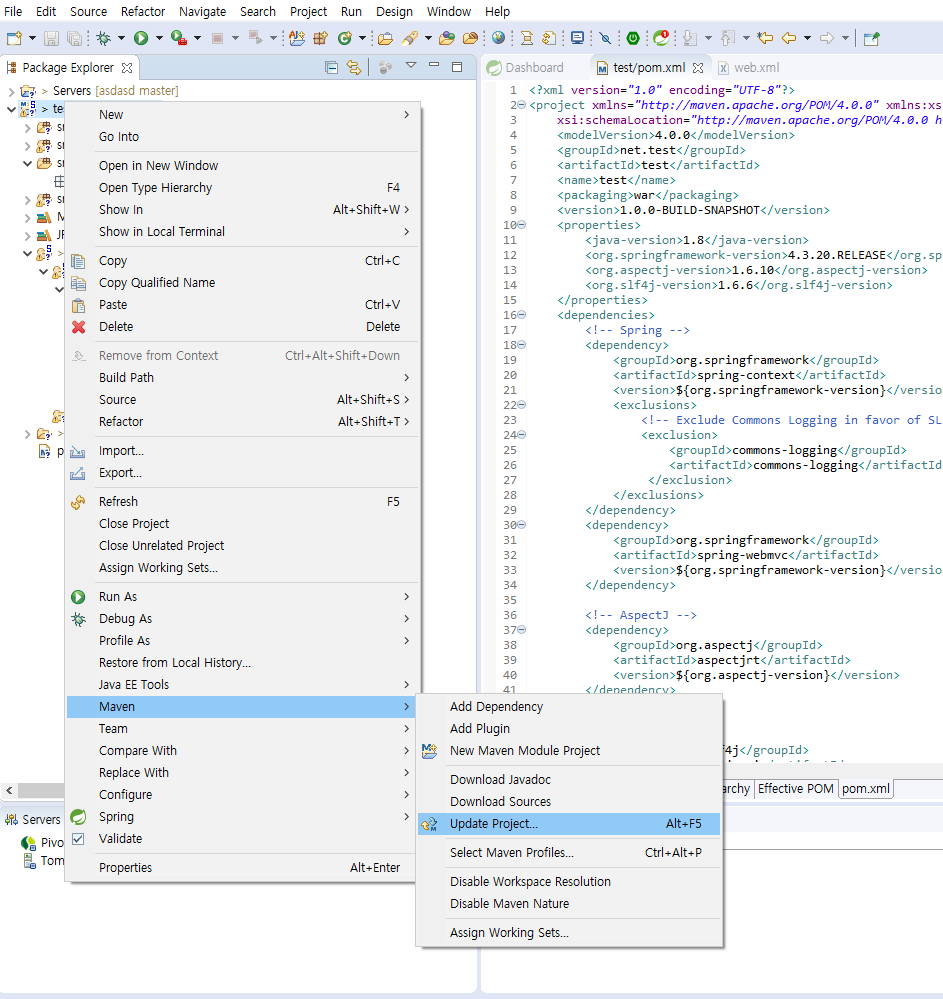 1. 먼저 필요한 Maven을 설치합니다. 아래의 메이븐저장소에 들어가서 spring-security-core, spring-security-web, spring-security-config, pring-security-taglibs 검색하여 pom.xml에 추가합니다. https://mvn..