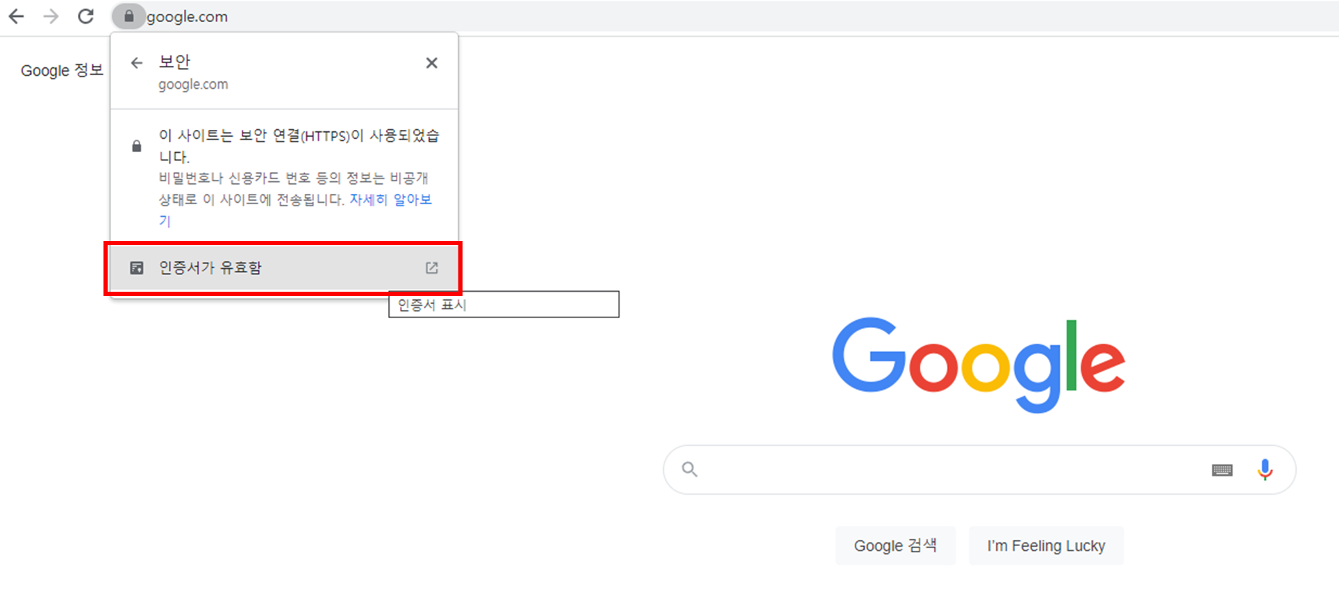1. Chrome에서 아무 사이트 접속하여 상단의 자물쇠 모양을 마우스 우클릭한다.
