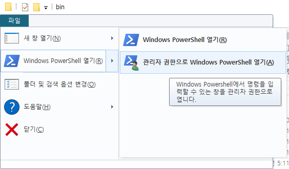C:\Program Files\Android\Android Studio\jre\bin 에서 폴더 Windows PowerShell 관리자로 열기