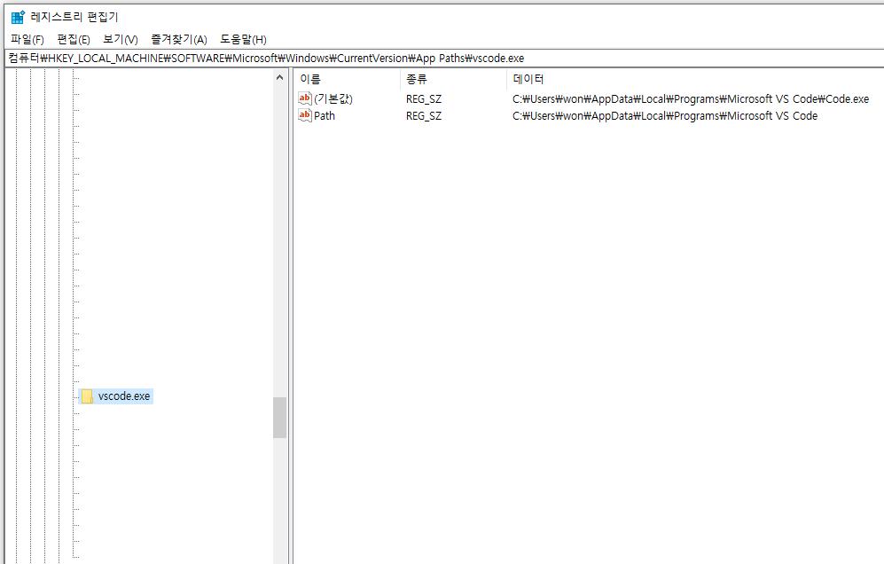 - 실행 파일이 위치한 폴더 경로 ex) C:\Users\VSCode