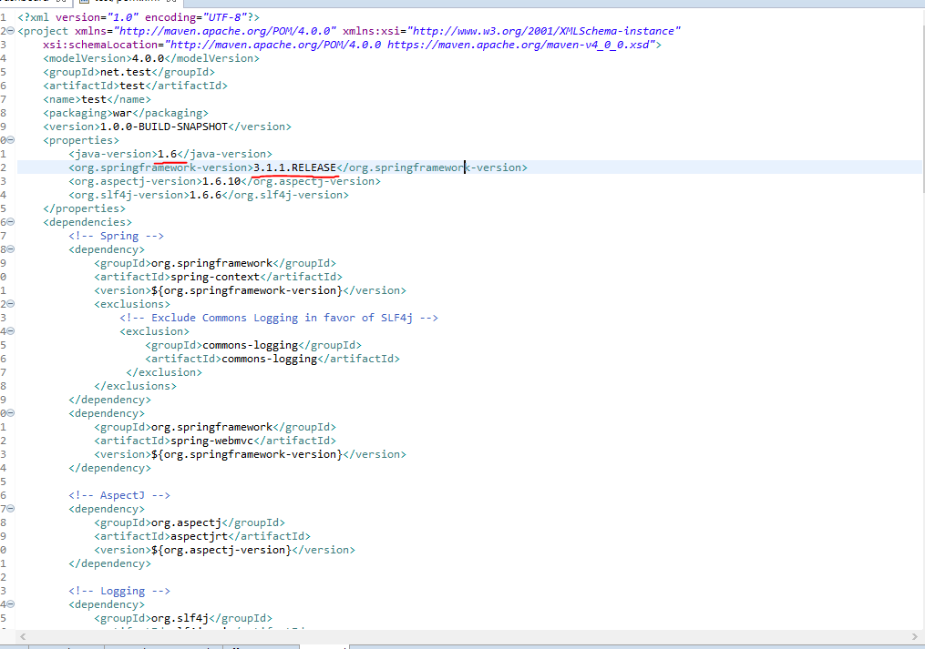 3. 프로젝트의 pom.xml에 들어가 밑줄친 부분을 1.8버전, 4.3.x버전으로 변경한다