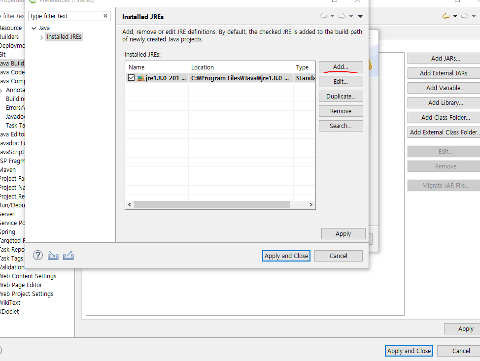 Installed JREs를 클릭한다.